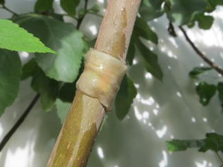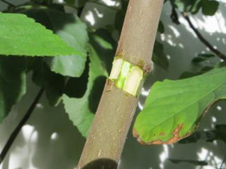 Am Stängel der Pflanze mit einem Messer etwas Rinde herunterschneiden.