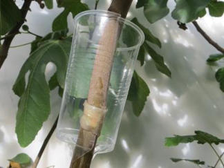 Wenn der Becher gut bewurzelt ist, so kann man unter den Becher den Stängel einfach abschneiden.