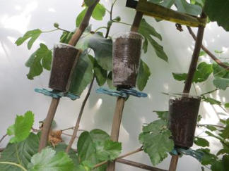 oder Wäscheklammern unter den Becher klemmen, so dass der Becher nicht am Stängel herunterrutschen kann.