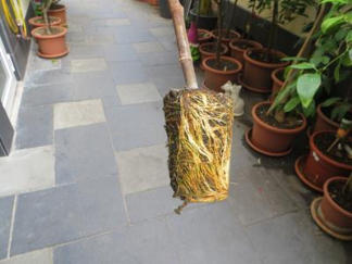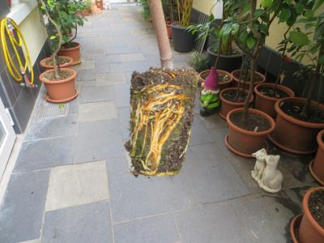Den Ableger nun aus dem Becher holen und in einen größeren Topf umsetzten.