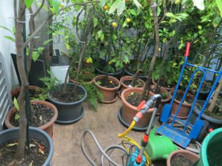 01.11.2011 die kleineren Pflanzen ziehen um in den Überwinterungsraum im 1. Stock. Die großen Pflanzen folgen bald in den Raum im Erdgeschoss